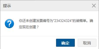 2.2、若所要关联的单据(如:装箱单),还不存在同被关联原产地证发票号相同的单据,则系统会出现以下提示: