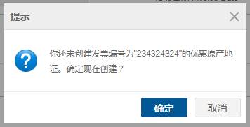 3.2、若所要关联的优惠原产地证,相同优惠区域其他优惠区域均不存在同被关联原产地证发票号相同的单据,则系统会出现以下提示: